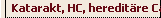 Der Vererbungsgang der Katarakt, die auch „HC“ wie „hereditäre Cataract“ genannt wird, ist beim Hund in den meisten Fällen rezessiv. Die vererbte Form tritt meist beidseitig auf und schreitet fort. In den überwiegenden Fällen kommt es im jugendlichen Alter (unter 6 Jahren) zur Ausprägung der Linsentrübung. Die Form des erblich bedingten grauen Stars tritt bei vielen Hundrassen auf, wobei es durchaus rassespezifische Unterschiede in der Ausprägung des grauen Stars gibt ( z.B. Cocker, Retriever, Schnauzer, West Highland White Terrier, Pudel). Natürlich können auch Mischlingshunde an dem erblichen grauen Star erkranken, wenn sie aus einer Anpaarung von zwei Rassehunden mit grauem Star stammen.