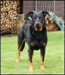 Wesen Der Beauceron wird heute als Wach-, Schutz- und Familienhund sowie als Vollgebrauchshund in allen Hundesportbereichen verwendet. Auch heute noch wird er für die Hütearbeit eingesetzt. Außerdem stellt er auch im Dienst der Polizei, des Katastrophenschutzes und als Such- und Rettungshund seine Vielfältigkeit unter Beweis. Der Beauceron ist ein mächtiger, sehr aktiver und bei der Arbeit sehr guter Hund mit außergewöhnlicher Ausdauer, wacher Intelligenz und ausgeprägtem Gehorsam. Kein Hund für faule Menschen! Treu und sehr seinem Herrn/seiner Herrin verbunden, liebt er alle Familienange-hörigen und vor allem die Kinder. Es ist eine Eigenart der Rasse, dass sie eine ungewöhnlich enge Beziehung zu einer Person entwickeln. Fremden gegenüber ist er reserviert und wachsam. Obwohl sich der Beauceron freundlich verhält, ist er von ihnen nicht zu beeinflussen. Oft ruhig und unauffällig wirkend, zeigt er doch mitunter sein überschäumendes Temperament, verbunden mit seiner Schnelligkeit und Geschmeidigkeit, die man ihm so nicht zutrauen würde. Ein besonderes Merkmal ist seine Robustheit, Gesundheit und die Unempfindlichkeit gegen Kälte. Es sind keine rassespezifischen Erbkrankheiten bekannt. Der Beauceron ist im Sozialverhalten zu andren Hunden problemlos, würde aber einer ernsthaften Auseinandersetzung nicht aus dem Weg gehen. Er ist kein Hund für jedermann, aber in den richtigen Händen bereitet er ein ganzes Hundeleben lang Freude. Gebellt wird nur, wenn es ihm notwendig erscheint. Der Hund arbeitet gerne mit viel Ausdauer, er braucht eine Beschäftigung. Dessen sollte man sich bei der An-Schaffung dieser Rasse bewusst sein. Bei fast allen ist eine gute Veranlagung für Schutz- und Fährtearbeit sichtbar, aber auch im Bereich Breitensport und Agility sind sie nicht fehl am Platz. Dabei ist aber zu berücksichtigen, dass der Beauceron ein spät reifer Hund ist, der sich erst mit 2,5 - 3 Jahren charaktlich gefestigt hat und erwachsen ist. Konsequent aber liebevoll erzogen und artgerecht gehalten, ist ein Beauceron etwas überaus Wertvolles. Er ist ein Hund, der Ihnen so lange er lebt sein Herz zu Füßen legt. Pflege: Eine große pflege braucht der Beauceron nicht. Sein Fell sollte während des Fellwechsels öfter gebürstet werden so erleichtert man sich die harre in der Wohnung und der Beauceron wird seine Haare schneller los. Die Afterkrallen, an den Hinterläufen, müssen alle 4-6 Wochen geschnitten werden das sie nicht zu lang werden. Aber es gibt auch Vertreter der Rasse die sich ihre Krallen selber kürzen. |