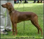 FCI - Standard Nr. 184 / 29. 03. 2006 / D DEUTSCHER PINSCHER 2 URSPRUNG : Deutschland. DATUM DER PUBLIKATION DES GÜLTIGEN ORIGINAL- STANDARDES : 21.02.2006 VERWENDUNG : Wach- und Begleithund. KLASSIFIKATION FCI: Gruppe 2 Pinscher und Schnauzer - Molossoide - Schweizer Sennenhunde und andere Rassen. Sektion 1 Pinscher und Schnauzer. Ohne Arbeitsprüfung. KURZER GESCHICHTLICHER ABRISS : Der glatthaarige Pinscher repräsentiert eine sehr alte Rasse, die bereits 1880 im Deutschen Hundestammbuch erwähnt wurde. Er hat die gleichen Vorfahren wie der Schnauzer, den man auch rauhhaariger Pinscher nannte. Der glatthaarige Pinscher unterschied sich von Anfang an durch seine Farbe und das kurze Haarkleid von den Rauhhaarigen. Die meisten von ihnen waren schwarz mit hellbraunen Abzeichen, einfarbig in Brauntönen bis rot, pfeffer/salz-farbig oder einfach blaugrau bis schwarz. ALLGEMEINES ERSCHEINUNGSBILD : Der Deutsche Pinscher ist glatthaarig, mittelgross, von stolzer Haltung, fliessend in den Umrisslinien, elegant und quadratisch gebaut. Er ist kräftig wie der Schnauzer; seine gut entwickelte Bemuskelung wird besonders in der Bewegung wegen des kurzen Glatthaares deutlich sichtbar. WICHTIGE PROPORTIONEN : Im Verhältnis von Länge zur Höhe soll das Gebäude möglichst quadratisch erscheinen. Die Gesamtlänge des Kopfes (Nasenspitze bis Hinterhauptbein) entspricht der Hälfte der Rückenlänge (Widerrist bis Rutenansatz). FCI-St Nr. 184 3 VERHALTEN / CHARAKTER (WESEN) : Lebhaft, temperament-voll, selbstsicher und ausgeglichen, gepaart mit Klugheit und Ausdauer, was ihn zu einem angenehmen Familien-, Wach- und Begleithund macht. KOPF : OBERKOPF : Schädel : Kräftig, gestreckt, ohne stark hervortretendes Hinterhauptbein. Die Stirn ist flach und verläuft parallel zum Nasenrücken. Stop : Leicht, aber dennoch deutlich markiert. GESICHTSSCHÄDEL : Nasenschwamm : Die Nasenkuppe ist gut ausgebildet und stets schwarz. Fang : Er endet in einem stumpfen Keil. Der Nasenrücken ist gerade. Lefzen : Schwarz, fest und glatt an den Kiefern anliegend, Lefzenwinkel geschlossen. Kiefer / Zähne : Kräftiger Ober- und Unterkiefer. Das vollständige Scherengebiss (42 Zähne gemäss der Zahnformel) ist kräftig, gut schliessend und rein weiss. Die Kaumuskulatur ist kräftig entwickelt, ohne störende Backenbildung. Augen : Dunkel, oval, schwarz pigmentierte, gut anliegende Lider. Ohren : Klappohren, hoch angesetzt, V-förmig, die Ohrinnenkanten an den Wangen anliegend, nach vorn gedreht in Richtung Schläfe, wobei die parallele Faltung den Oberkopf nicht überragen soll. HALS : Edel geschwungen, nicht zu kurz. Ohne Ansatz harmonisch in den Widerrist übergehend; trocken, ohne Wamme oder lose Kehlhaut. Die Kehlhaut ist straff und liegt faltenlos an. KÖRPER : Obere Profillinie : Vom Widerrist ausgehend nach hinten leicht abfallend. Widerrist : Er bildet die höchste Stelle der Oberlinie. FCI-St Nr. 184 4 Rücken : Kräftig, kurz und stramm. Lenden : Lendenpartie kurz, kräftig und tief. Der Abstand vom letzten Rippenbogen bis zur Hüfte ist kurz, damit der Hund kompakt wirkt. Kruppe : In leichter Rundung verlaufend, unmerklich in den Rutenansatz übergehend. Brust : Mässig breit, im Querschnitt oval, bis zu den Ellenbogen reichend. Die Vorbrust ist durch die Brustbeinspitze markant ausgebildet. Untere Profillinie und Bauch : Flanken nicht übermässig aufgezogen, mit der Unterseite des Brustkorbes eine schöne geschwungene Linie bildend. RUTE : Naturbelassen. GLIEDMASSEN VORDERHAND : Allgemeines : Vorderläufe sind, von vorn gesehen, stämmig, gerade und nicht eng gestellt. Die Unterarme stehen, seitlich gesehen, gerade. Schultern : Das Schulterblatt liegt fest dem Brustkorb an, ist beiderseits der Schulterblattgräte gut bemuskelt und überragt oben die Dornfortsätze der Brustwirbel. Möglichst schräg und gut zurückgelagert, beträgt der Winkel zur Waagrechten ca. 50°. Oberarm : Gut am Rumpf anliegend, kräftig und muskulös, Winkel zum Schulterblatt etwa 95° bis 105°. Ellenbogen : Korrekt anliegend, weder aus- noch einwärts drehend. Unterarm : Kräftig entwickelt und bemuskelt, von vorne und von der Seite gesehen völlig gerade. Vorderfusswurzelgelenk : Kräftig und stabil. Vordermittelfuss : Kräftig und leicht federnd, von vorn gesehen senkrecht, von der Seite betrachtet leicht schräg zum Boden stehend. Vorderpfoten : Kurz und rund. Zehen eng aneinanderliegend und gewölbt (Katzenpfoten), Ballen derb, Nägel kurz, schwarz und stark. HINTERHAND : Allgemeines : Von der Seite gesehen schräg gestellt, von hinten gesehen parallel verlaufend, nicht eng gestellt. Oberschenkel : Mässig lang, breit und kräftig bemuskelt. FCI-St Nr. 184 5 Knie : Weder ein- noch auswärts gedreht. Unterschenkel : Lang und kräftig, sehnig, in ein kraftvolles Sprunggelenk übergehend. Sprunggelenk : Ausgeprägt gewinkelt, kräftig, stabil, weder nach innen noch nach aussen gerichtet. Hintermittelfuss : Senkrecht zum Boden stehend. Hinterpfoten : Etwas länger als die Vorderpfoten, Zehen eng aneinanderliegend und gewölbt; Nägel kurz und schwarz. GANGWERK : Der Deutsche Pinscher ist ein Traber. Der Rücken bleibt in der Bewegung fest und relativ ruhig. Der Ablauf der Bewegung ist harmonisch, sicher, kraftvoll und ungehemmt, bei guter Schrittweite. Typisch für den Trab ist ein raumgreifender, gelöster und flüssiger Bewegungsablauf, mit kräftigem Schub und freiem Vortritt. HAUT : Eng anliegend am ganzen Körper. HAARKLEID HAAR : Kurz und dicht, glatt anliegend und glänzend, ohne kahle Stellen. FARBE : Einfarbig : Hirschrot, rot-braun bis dunkelrot-braun. Schwarzrot : Lackschwarzes Haar mit roten bzw. braunen Abzeichen. Anzustreben ist ein möglichst dunkler, satter, scharf abgegrenzter Brand. Die Abzeichen verteilen sich : über den Augen, an der Halsunterseite, am Mittelfuss der Vorderläufe, an den Pfoten, an den Innenseiten der Hinterläufe und unter der Rutenwurzel. Zwei gleichmässige, voneinander sauber abgegrenzte Dre